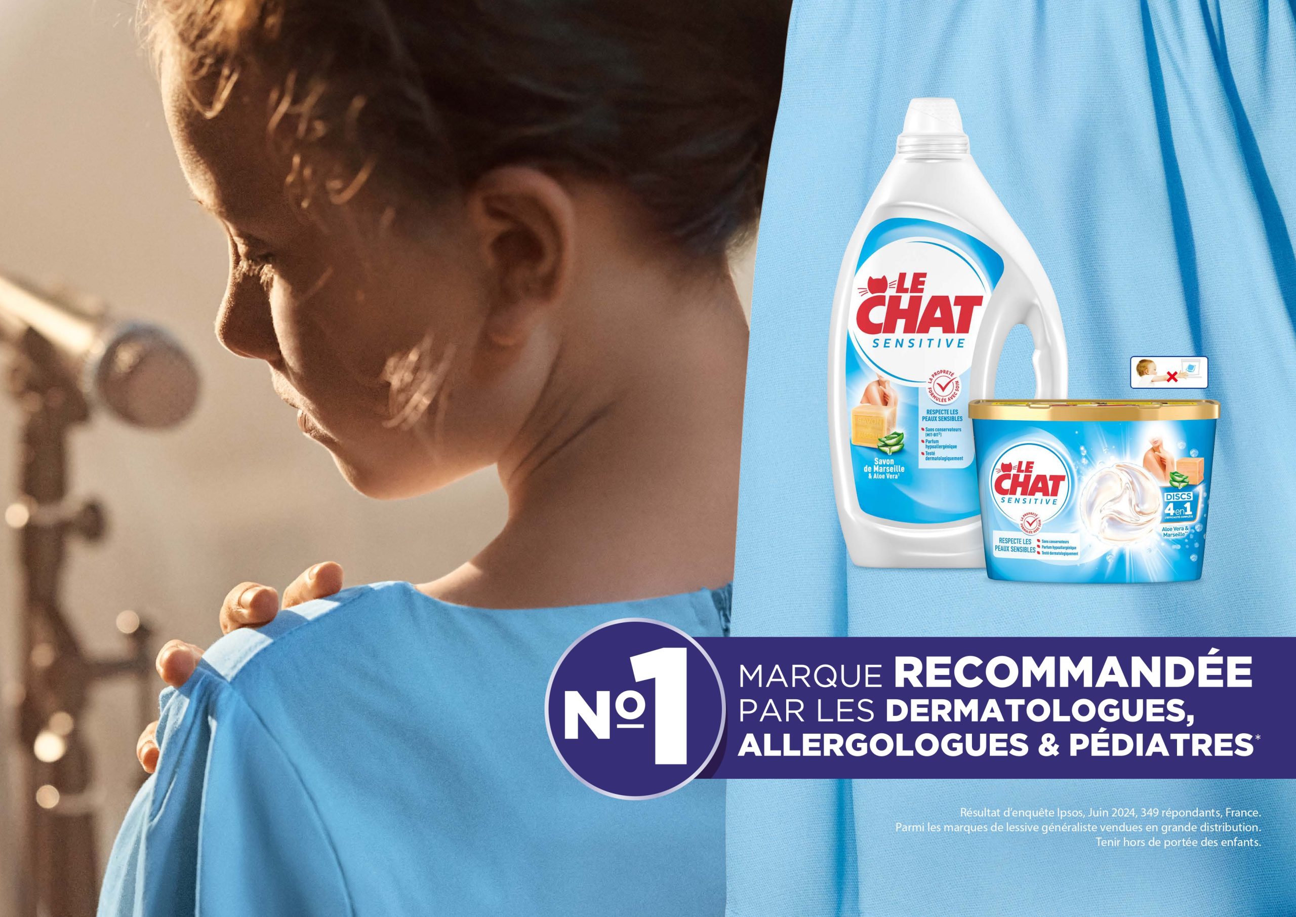 * Parmi les marques de lessive généralistes vendues en grande distribution. Étude d’opinion Ipsos, juin 2024, 349 répondants, France.